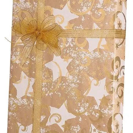Gold Stars & Swirls exemplifies refined rusticity. While a smattering of white stars litter the background of this kraft paper, a glimmering sweep of swirls and stars heighten the visual interest and provide a perfect balance of contrasts.